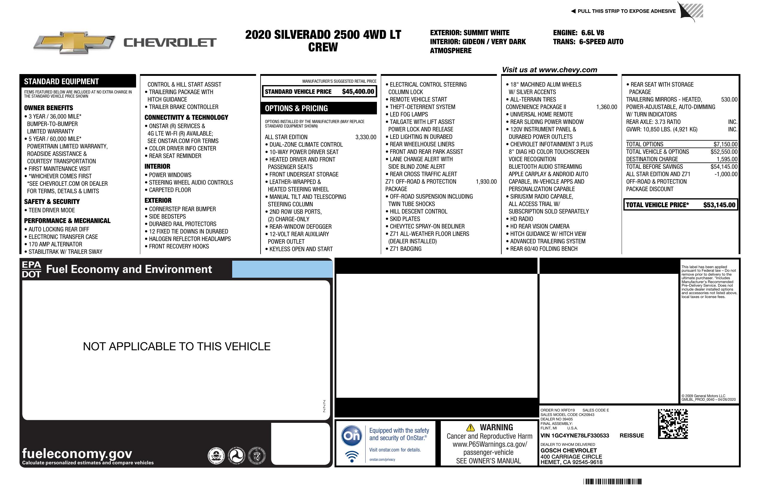 2020 Chevrolet Silverado 2500HD 4WD Crew Cab 172" LT